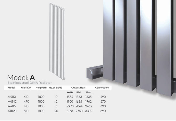 با رادیاتور استیل دیما مدل A، گرمایی لوکس و کارآمد را به خانهتان بیاورید! ساخته شده از استنلس استیل با کیفیت، این رادیاتور نه تنها زیبا و مدرن است، بلکه با مقاومت بالا در برابر زنگزدگی، انتخابی هوشمندانه برای افزایش عمر و کارایی سیستم گرمایشی شماست. تجربهی گرمای بینظیر را همین حالا از دست ندهید!