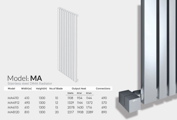 رادیاتور استنلس استیل دیما مدل MA، ترکیبی از زیبایی و کارایی! با طراحی مدرن و جنس ضد زنگ، این رادیاتور جاذب نگاه در هر فضایی خواهد بود. کارایی بالا در تولید گرما و صرفهجویی در مصرف انرژی باعث میشود تا محیطی گرم و دلپذیر داشته باشید. انتخابی هوشمندانه برای خانههای شیک و مدرن!